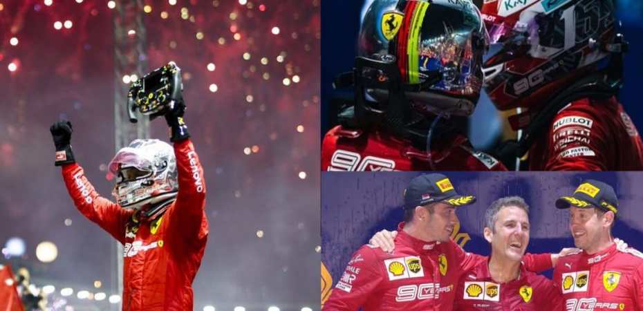 ”Bentornato Sebastian”. Eh si, a distanza di circa un anno, Sebastian Vettel torna a vincere con la Rossa e le lacrime sfoggiate sul podio, oltre al sudore dei piloti che fa ben capire la forza con la quale hanno gareggiato, sono state lo specchio di tutti i tifosi della rossa che da tanto aspettavano questo momento. O meglio: chi credeva ancora in Sebastian Vettel. Errori di nervosismi a parte, la vittoria di oggi del tedesco non è mai stata così azzeccata e giusta. Alle qualifiche è arrivato tanto così a conquistarsi la pole, ma in gara ha gridato un netto ‘NO’ a chi voleva soffiargli la leadership. Se la meritava già nella gara maledetta dei 5 secondi di penalità ed in tante altre successivamente e finalmente oggi il tedesco è tornato. Lui che sul podio dopo l’inno ha sfoggiato la bandiera con l’hashtag #EssereFerrari. Per lui queste semplici parole sono più di un motto, sono diventate ormai uno stile di vita. Il dito indice alzato al cielo con i fuochi d’artificio di Singapore dopo aver tagliato il traguardo, sono cose che forse hanno contribuito a scacciare via tutti i pensieri negativi di queste settimane.